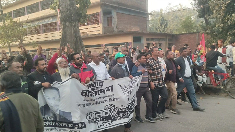 ধুনটে ধানের শীষ প্রতীকের সমর্থনে বিএনপির নির্বাচনী মিছিল