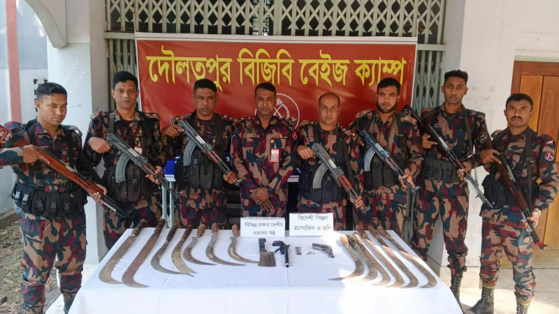 দৌলতপুর সীমান্তে বিজিবির অভিযান: বিদেশি পিস্তলসহ দেশীয় অস্ত্র উদ্ধার