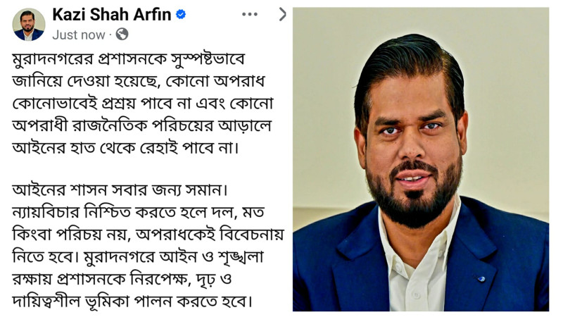 “দল নয়, অপরাধ দেখব”: মুরাদনগর এমপি'র ছোট ভাই আরেফীনের কড়া বার্তা