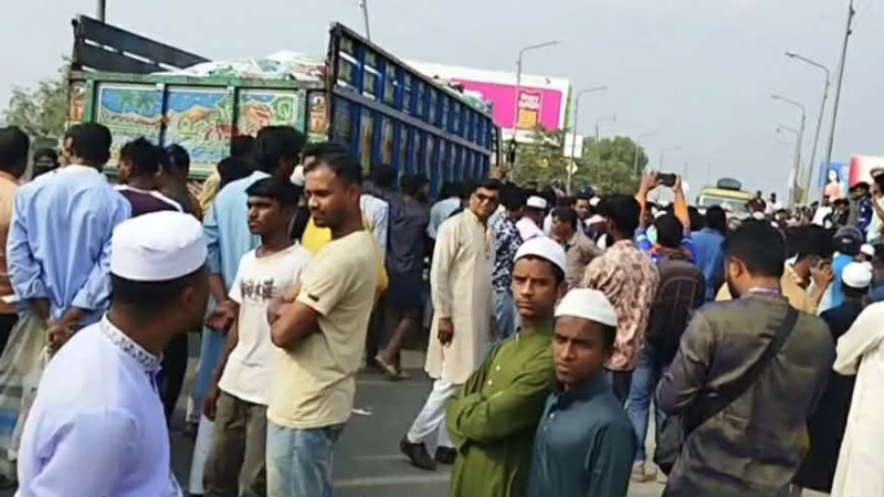 শাজাহানপুরে বেতগাড়ী বাইপাসে ফ্লাইওভারের দাবিতে লাশ রেখে অবরোধ