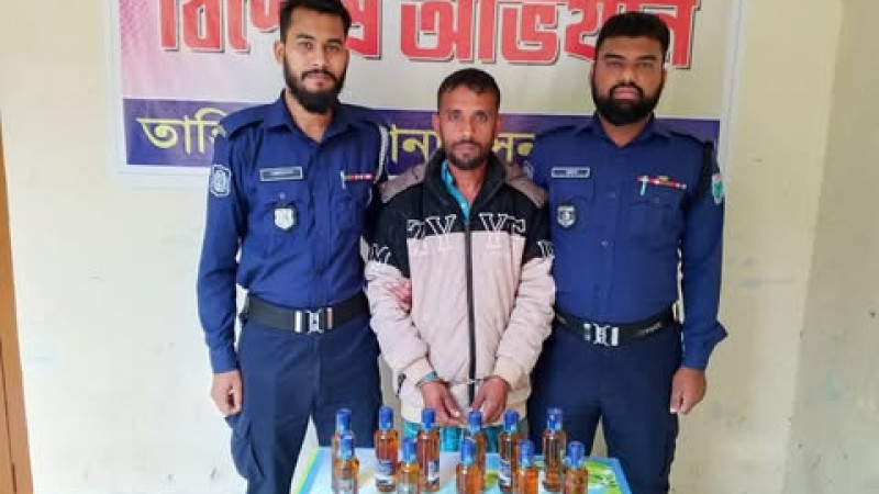 তাহিরপুরে ১১ বোতল ভারতীয় মদসহ গ্রেপ্তার ১