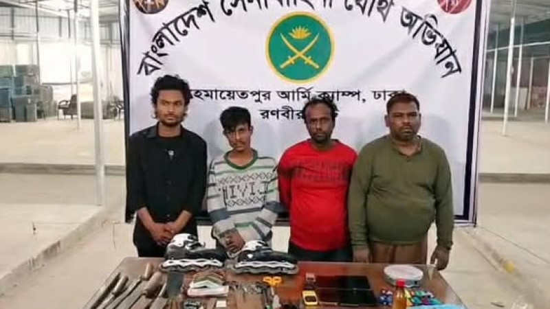 সেনাবাহিনীর অভিযানে অস্ত্র ও মাদক-সহ ছিনতাইকারী চক্রের ৪ সদস্য গ্রেপ্তার