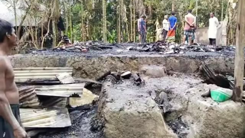 শরণখোলায় আগুনে পুড়ে শিক্ষকের ঘর ছাই, ব্যাপক ক্ষতি