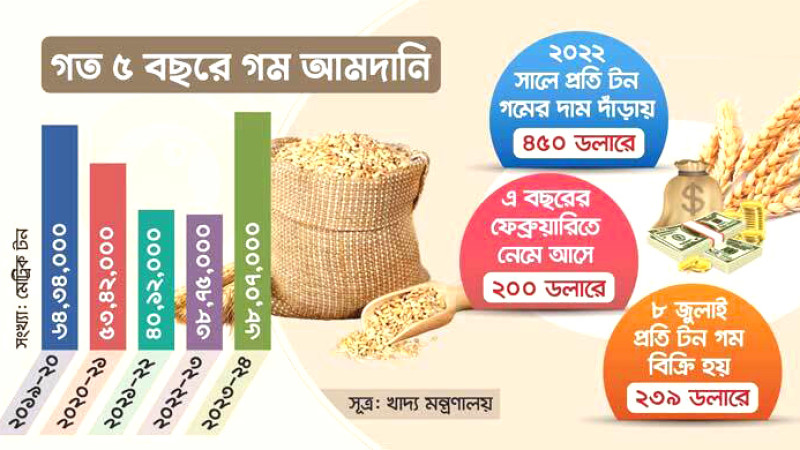 রেকর্ড আমদানি, কমছে গম ও গমজাত পণ্যের দাম