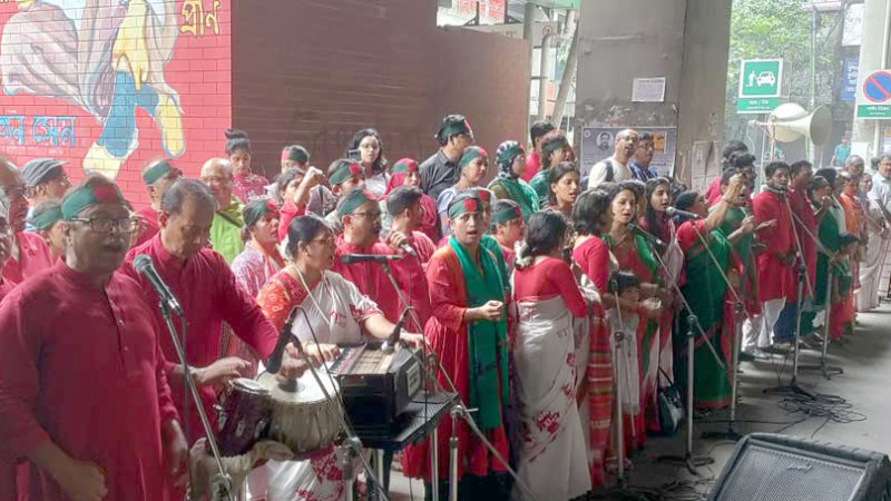 সম্মিলিত কণ্ঠে জাতীয় সংগীত গেয়ে উদীচীর প্রতিবাদ