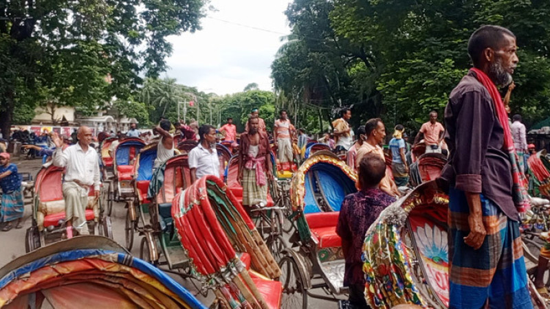 অটোরিকশা বন্ধের দাবিতে শাহবাগে রিকশাচালকদের বিক্ষোভ