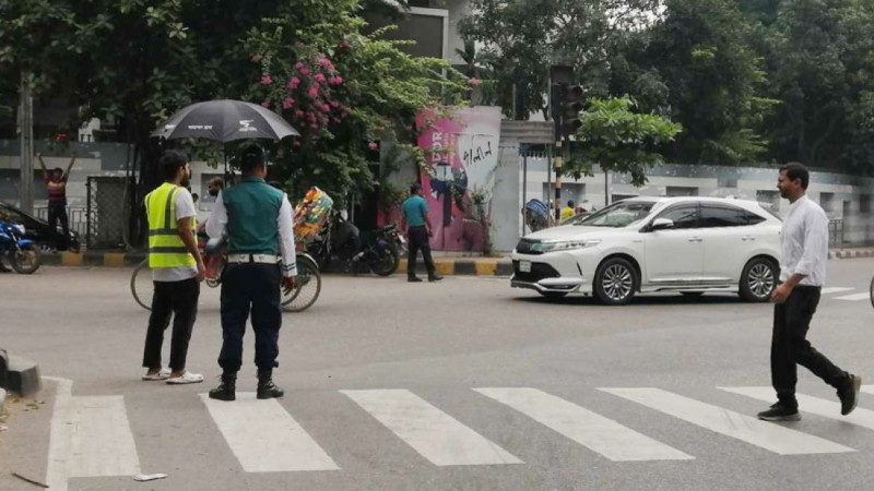 সড়কে ফিরেছে ট্রাফিক পুলিশ, আছে ছাত্র-জনতাও