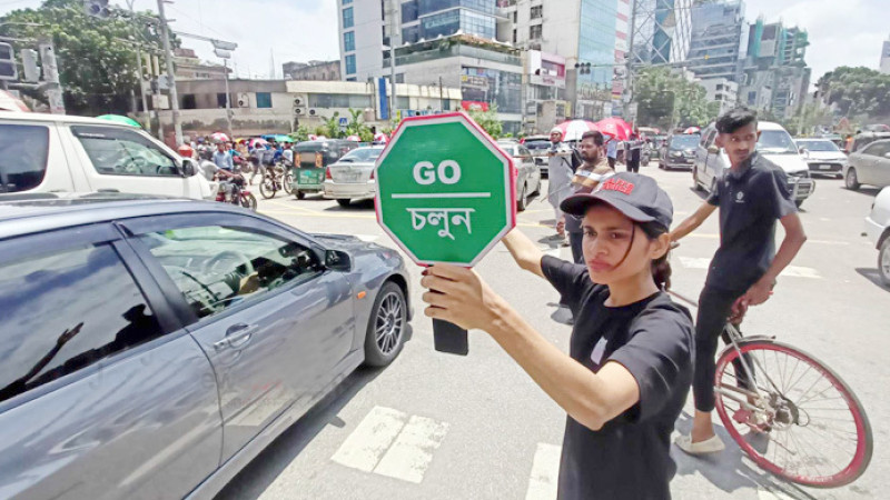 রাস্তার ট্রাফিক নিয়ন্ত্রণে শিক্ষার্থীরা
