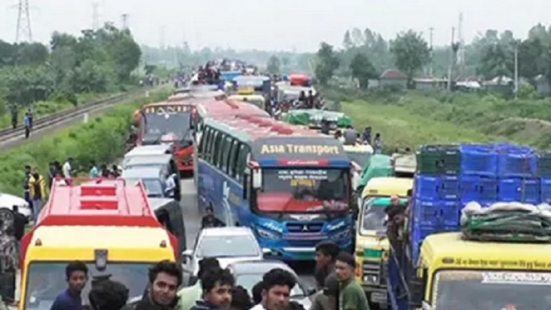 ঢাকা-টাঙ্গাইল মহাসড়কে ৮ কিলোমিটার যানজট