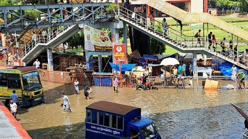 সকালের বৃষ্টিতে ঢাকার বিভিন্ন সড়কে জলাবদ্ধতা
