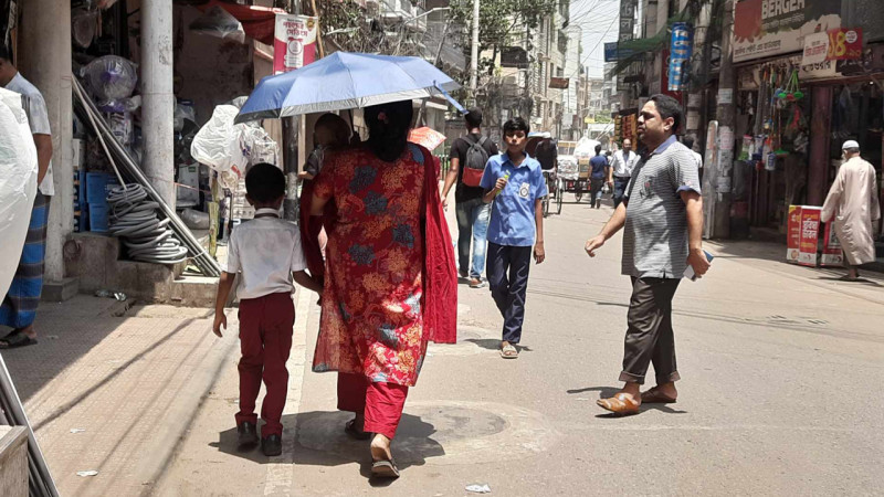 স্কুল শেষে ঘাম মুছতে মুছতে বাড়ি ফিরছে শিক্ষার্থীরা