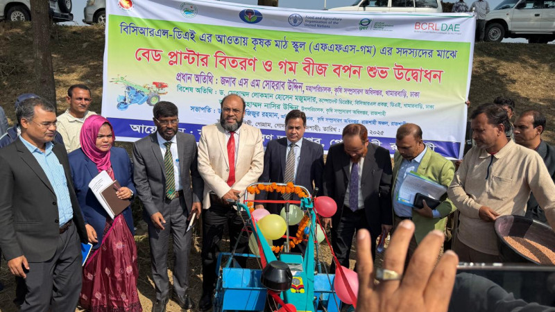 উৎপাদন ব্যয় কমাতে গোদাগাড়ীতে বেড প্লান্টারে গম চাষের উদ্বোধন
