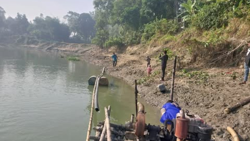 ঘাটাইলে অবৈধ ড্রেজার বালু উত্তোলনের মেশিন ধ্বংস