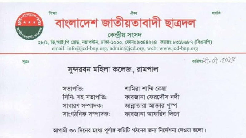রামপালের সু্ন্দরবন মহিলা কলেজ ছাত্রদলের আংশিক কমিটি গঠন নেতৃবৃন্দের অভিনন্দন