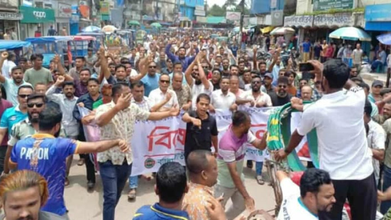 সুনামগঞ্জে জেলা স্বেচ্ছাসেবক দলের বিক্ষোভ মিছিল