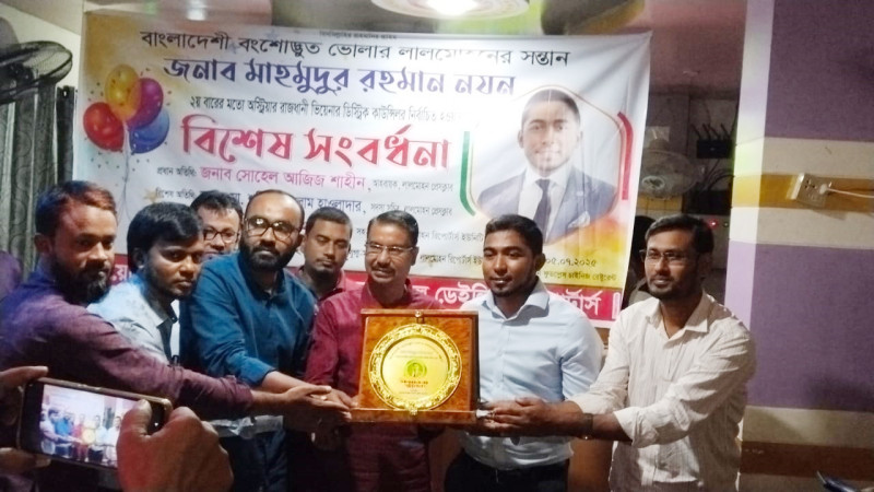 ভিয়েনার রাজ্য কাউন্সিলর মাহমুদুর রহমান নয়ন কে লালমোহনে বিশেষ সংবর্ধনা