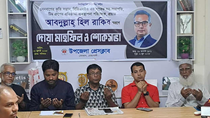 সেনবাগে আবদুল্লাহ্ হিল রাকিব স্মরণে দোয়া ও শোকসভা অনুষ্ঠিত