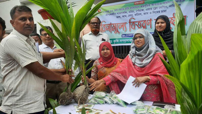 চিরিরবন্দরে বিনামূল্যে বিভিন্ন শিক্ষা প্রতিষ্ঠানে তাল ও নারিকেল গাছের চারা বিতরণ