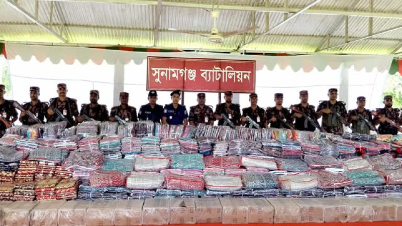 সুনামগঞ্জের বিজিবি”র অভিযানে সাড়ে ৫ কোটি টাকার ভারতীয় শাড়ি,লেহঙ্গা ও কসমেটিক্র জব্দ