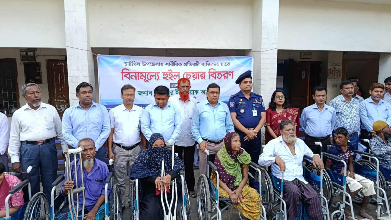 নোয়াখালীতে শারীরিক প্রতিবন্ধীদের হুইল চেয়ার ও নগদ অর্থ প্রদান