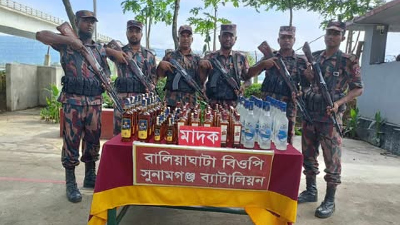 তাহিরপুর সীমান্তে প্রায় ১২লক্ষাধিক টাকা ভারতীয় মদের চালান আটক