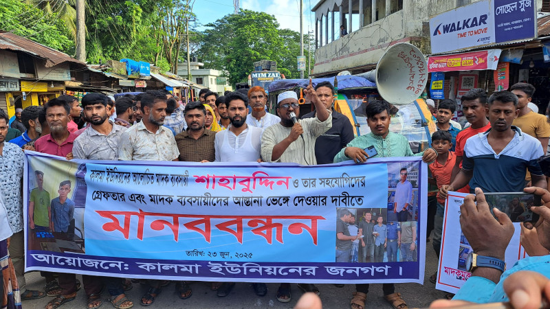 লালমোহনে মাদকের বিস্তার রোধ ও মাদক ব্যবসায়ী বিরুদ্ধে মানববন্ধন