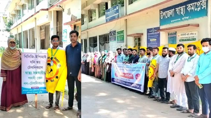মুরাদনগরে নিয়োগবিধি সংশোধনসহ ৬ দাবিতে স্বাস্থ্য সহকারীদের অবস্থান কর্মসূচি