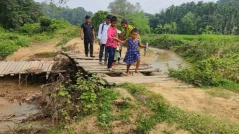 সেতু-রাস্তার অভাবে সীমাহীন দুর্ভোগে সীমান্তবর্তী হারিয়াকোনা গ্রামের মানুষ