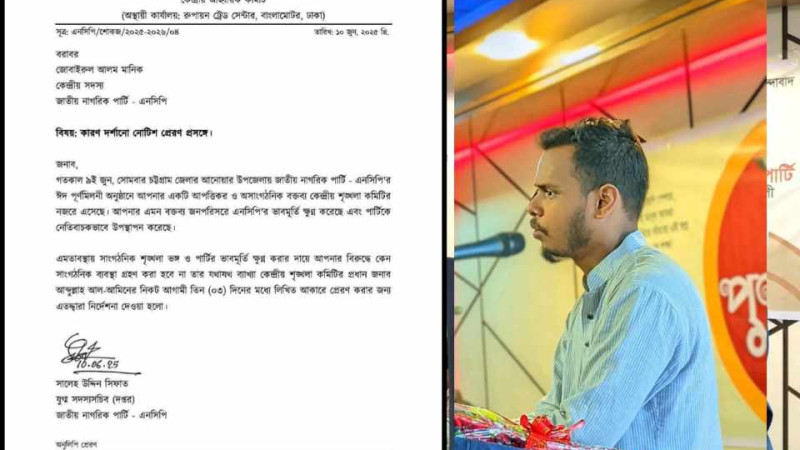 "আমরাই বড় মাফিয়া"বিতর্কিত বক্তব্যে এনসিপি নেতা মানিককে কারণ দর্শানোর নোটিশ