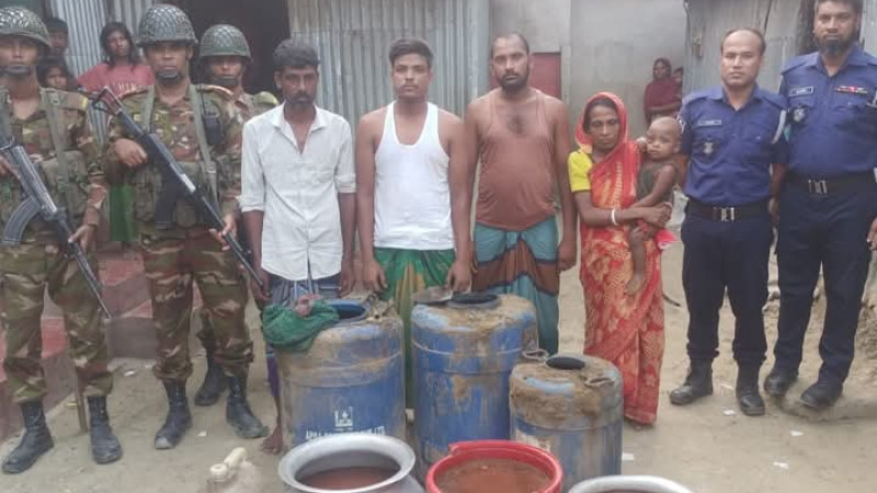 আজমিরীগঞ্জে সেনাবাহিনীর অভিযানে আটশত লিটার মদ ও মাদক কারবারি মহিলা সহ আটক চার