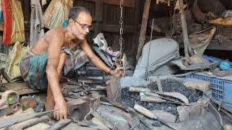 আজমিরীগঞ্জে দিন রাত ঠুংঠাং শব্দে মধ্যে দিয়ে ব্যস্ত সময় পার করছেন কামার শিল্পীরা