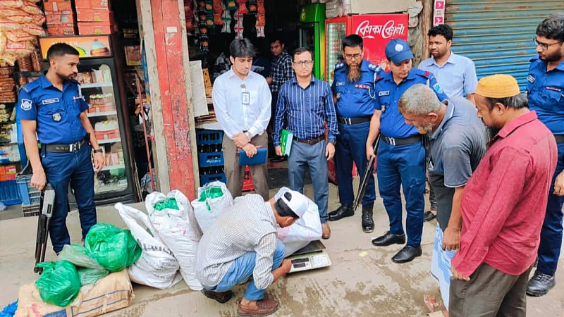 নারায়ণগঞ্জে নিষিদ্ধ পলিথিন বিক্রির দায়ে জরিমানা, ৮০ কেজি জব্দ