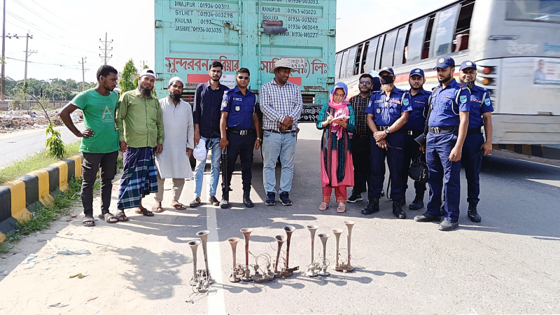 নারায়ণগঞ্জে শব্দ দূষণবিরোধী অভিযান: ৫ যানবাহনকে জরিমানা, হর্ণ জব্দ