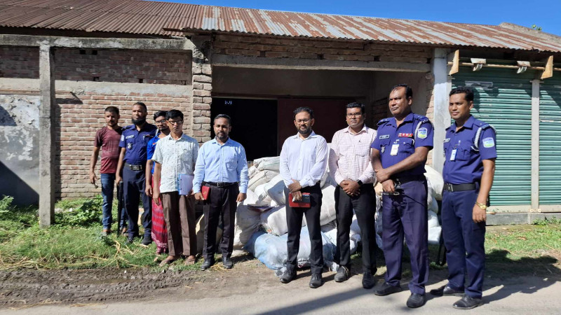 শেরপুরে পরিবেশ অধিদপ্তরের অভিযানে আন্ডারগ্রাউন্ড গোডাউনে বিপুল পরিমাণ পলিথিন জব্দ