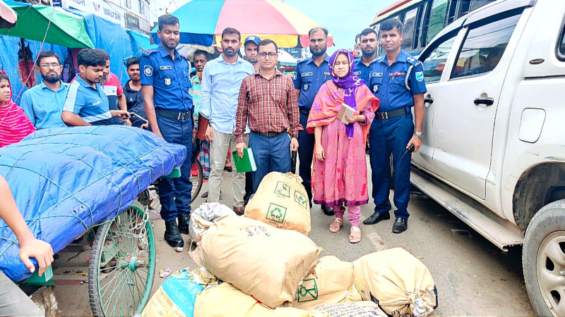 নারায়ণগঞ্জে ৩৫০ কেজি নিষিদ্ধ পলিথিন জব্দ, ৫০ হাজার টাকা জরিমানা