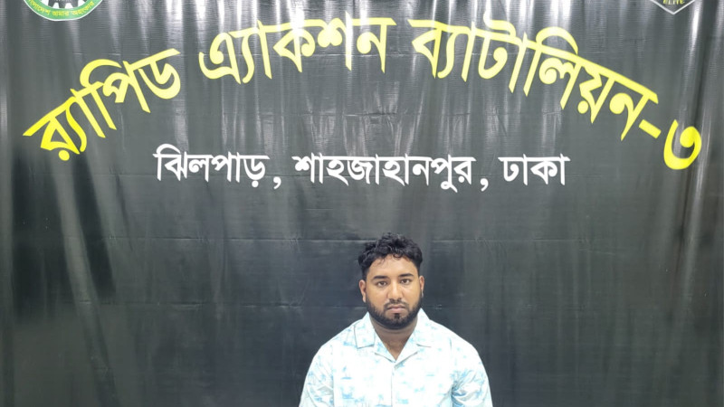 র্যাব পরিচয়ে যাত্রীবাহী বাসে ডাকাতি মামলার আসামি মোঃ আল-আমিন কে গ্রেফতার করেছে র্যাব