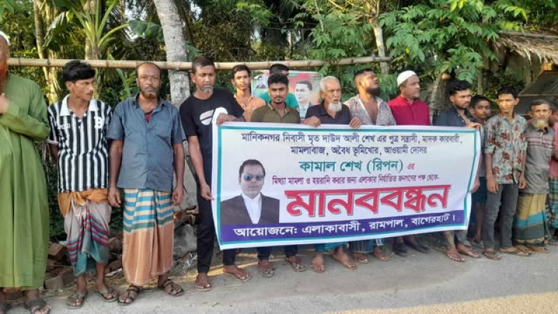 রামপালে হয়রানিমূলক মিথ্যা মামলা প্রত্যাহারের দাবিতে গ্রামবাসীর মানববন্ধন