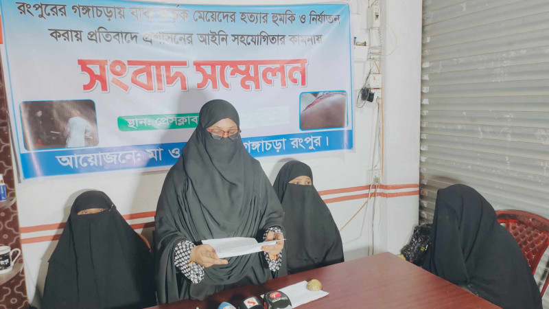 গঙ্গাচড়ায় হত্যার হুমকি ও নির্যাতন থেকে বাঁচতে পিতার বিরুদ্ধে সংবাদ সম্মেলন