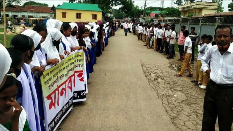 আতর্কিত হামলার প্রতিবাদে বাগমারায় মানববন্ধন