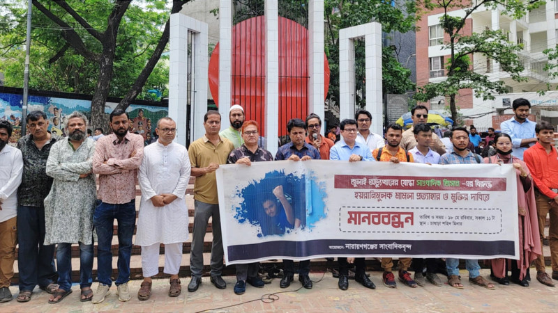 নারায়ণগঞ্জে সাংবাদিক জিসানের মুক্তি ও হয়রানিমূলক মামলা বন্ধের দাবি