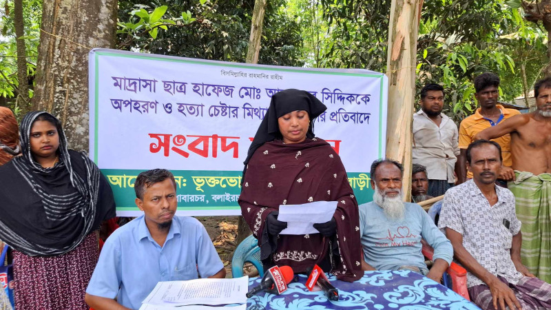 শেরপুরে মাদ্রাসা ছাত্র আবু বক্কর সিদ্দিককে অপহরণ ও হত্যা চেষ্টার মিথ্যা অভিযোগের প্রতিবাদে সংবাদ সম্মেলন