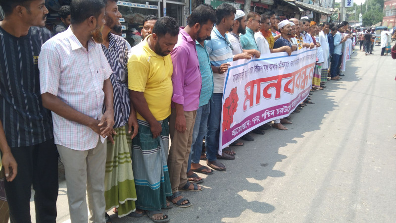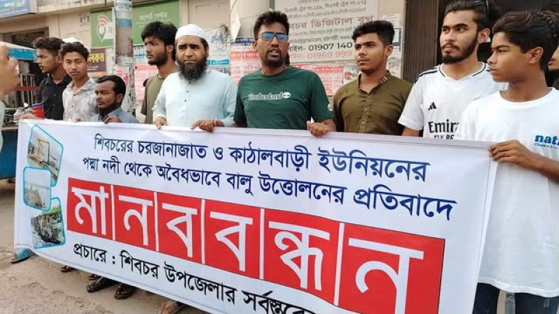 কাঠালবাড়িতে অবৈধ বালু উত্তোলনের প্রতিবাদে মানববন্ধন