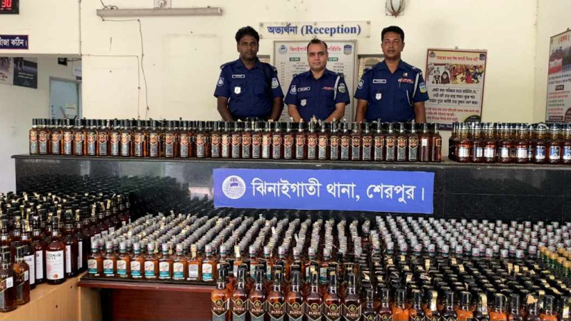 ঝিনাইগাতীতে ১৩৮৬ বোতল ভারতীয় মদ উদ্ধার
