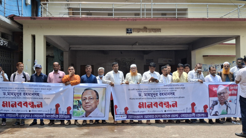 আমার দেশ সম্পাদকসহ সাংবাদিকদের বিরুদ্ধে মিথ্যা মামলা করার প্রতিবাদে নোয়াখালীতে মানববন্ধন