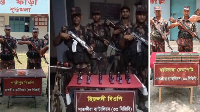 সাতক্ষীরায় ৭৫০ পিস কাটাগ্রা ট্যাবলেট ও ১৮ বোতল ফেনসিডিলসহ ভারতীয় মালামাল আটক করেছে বিজিবি