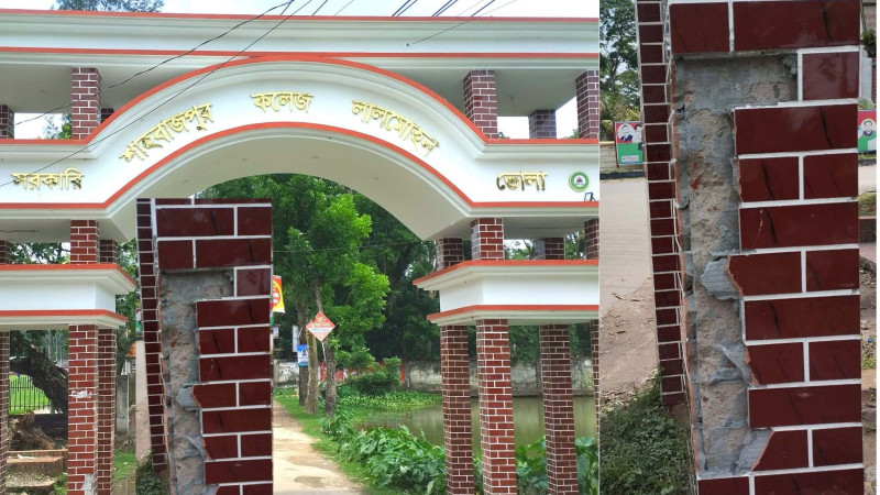 লালমোহন সরকারি শাহবাজপুর কলেজের প্রধান ফটক ক্ষতিগ্রস্ত; রাস্তা বন্ধের দাবি শিক্ষার্থীদের