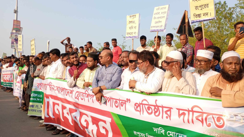 চীনের প্রস্তাবিত ১ হাজার শয্যার হাসপাতাল গঙ্গাচড়ায় করার দাবিতে মানববন্ধন