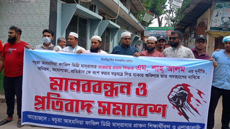 রামগঞ্জের কচুয়া মাদ্রাসার অধ্যক্ষের অপসারণের দাবিতে মানববন্ধন