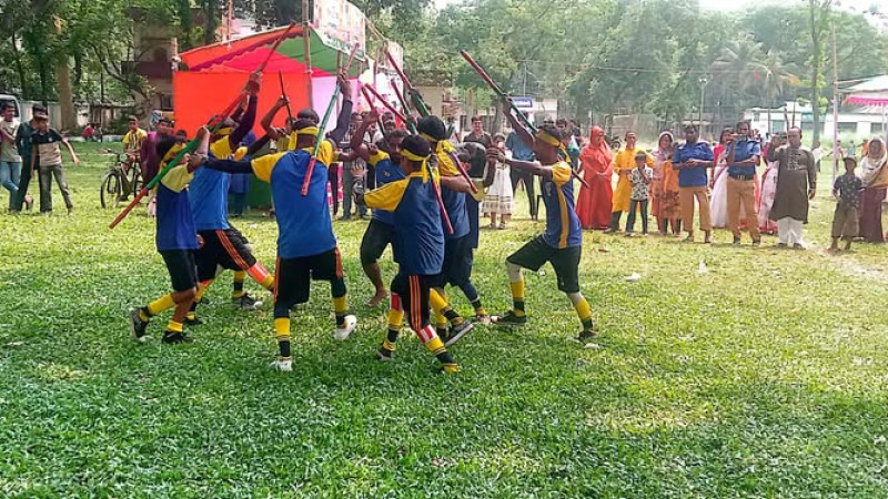 গ্রাম বাংলার ঐতিহ্য তুলে ধরতে বেলাবোতে লাঠি খেলা অনুষ্ঠিত