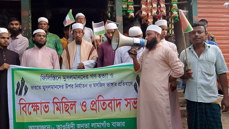 ফিলিস্তিনে ইসরাইলের বর্বরতার প্রতিবাদে লামাগাও বাজারে বিক্ষোভ মিছিল